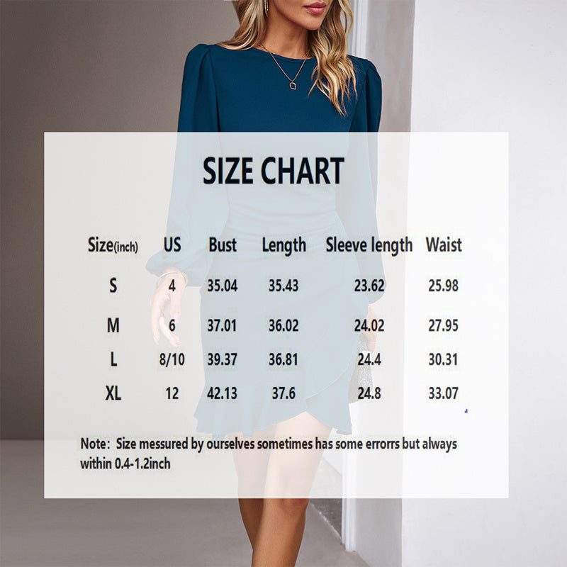 Women's Solid Color Bohemian Puff Sleeve Dress - Slim Fit Round Neck Long Sleeve Dress for Casual & Semi-Formal Occasions